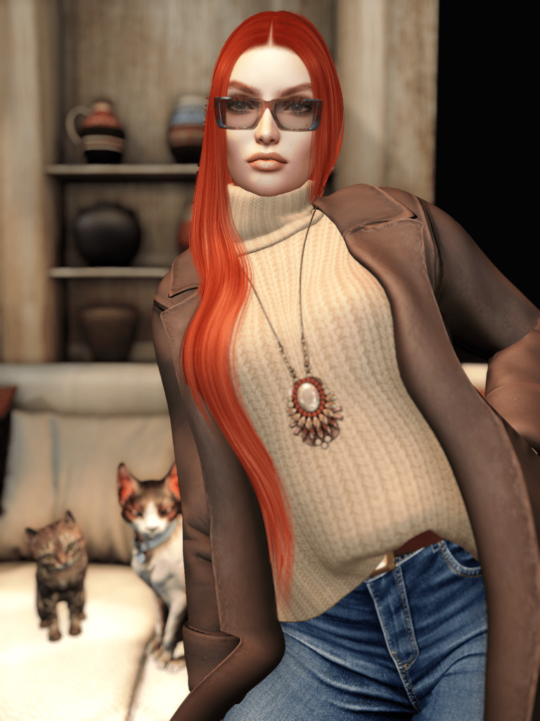Close up details take center stage in this relaxed, face focused look. Soft hair, gentle features, and comfort driven styling come together in a quiet moment at home, where subtle beauty and ease matter more than going anywhere at all.