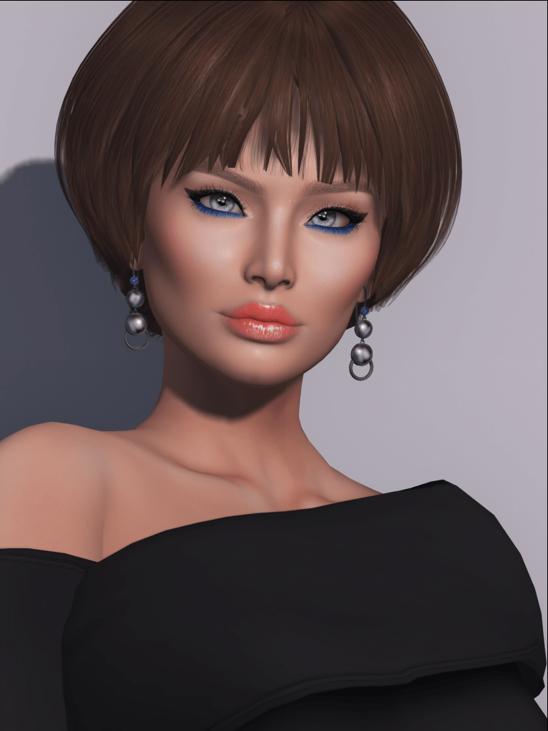 My eye make-up I picked up at Cazimi. I’m wearing the Pixie eyeshadow which has a beautiful winged eyeliner on the upper lid, and on the waterline a bright contrasting colour. I went for the kobalt because it works so beautifully with the sapphire stones in Cae‘s Raegan set, of which I am wearing the earrings here today. The set is available as separates, or as fatpack at Uber and had a texture changing HUD for the pearls, the gemstones and the metals!