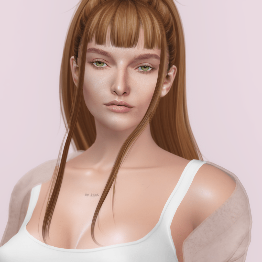Turns out that the one dry patch which irked me the most, I haven’t been able to cover that up! It’s the one next to my mouth, to the right (for the viewer), but other than that, thanks to our in-world Dermatologist Izzie Button (Brand name Izzie’s) who pretty much has cures for all your skin issues whether it be unwanted painted on mascara or the actual LACK of skin texture, or like in my case, where I used her Eyelid changer medium, the under eye concealer, the nose shading fix and the nostril lighter to even out the base of the skin. This is mainly to take away some of the hyper coloration. Then I went in with Nuve‘s cooling filter, which comes with her skins, and on top of that, I added Glam Affair‘s skin shadow 40% to add back some depth. I also added Jack Spoon‘s Biba Beauty mark, simply because I can and I love how it looks, and added some blush from Avarosa (included in their skin packs) and a high lighter for my cheekbones from Nar Mattaru, which is part of her Gryla make up set.