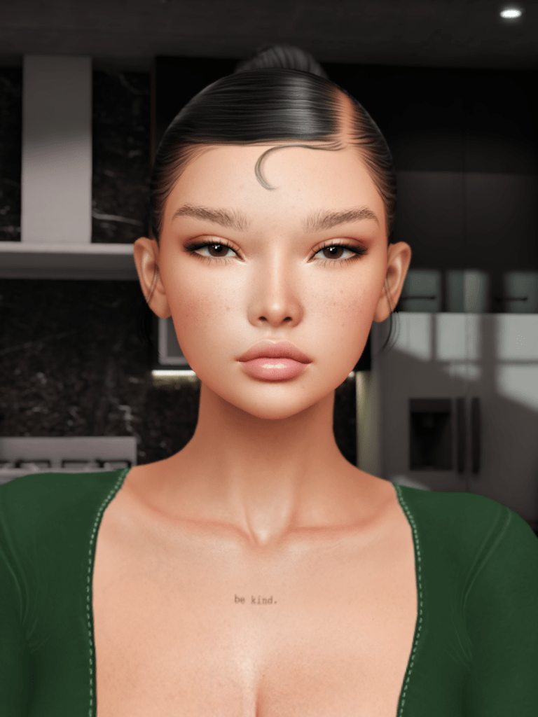OHAI! Long time no see! So I figured I’d circle back to the GRWM (Get Ready With Me) posts, because skins and make up in SL are still among my greatest passions in SL. Earlier I picked up Dani by Ives at Anthology and she’s so flawless that she is not really suitable for a non-make-up/fresh out of the shower look. So I took some liberties with my skin and used the HD brows from the LeLutka HUD instead of the default ones on Dani, and I have added some blemishes by Izzie’s, who never disappoints in providing the most realistic and useful avatar customizations!