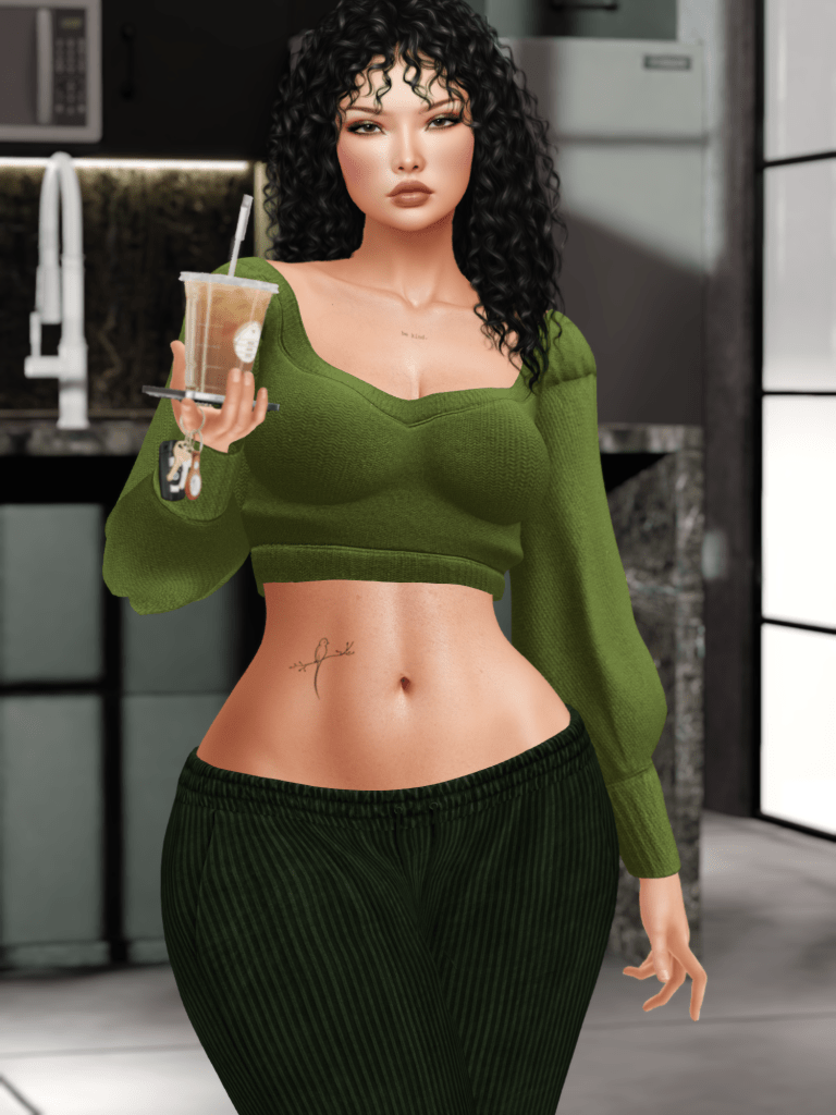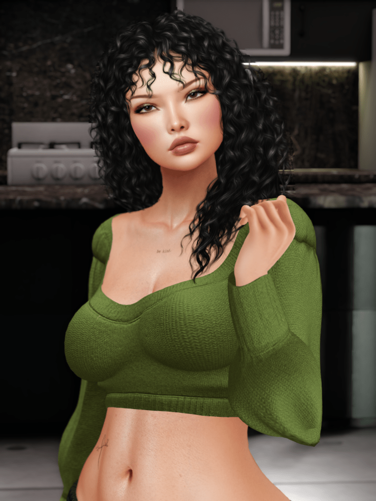 And there we are! I went for green! Actually, I had a fair feeling I was going to move in that direction when I slipped into my Inventory Essentials by Miamai straight out of the shower this morning. But green comes in many hues, and clothing variations! Jack Spoon, one of my favourite make up brands, which now also has a growing collection of apparel, has released this pretty Delfina sweater at Anthology, so of course I had to grab that! It has a low back, with a pretty bow, which makes it also a lovely item for a more formal, festive look