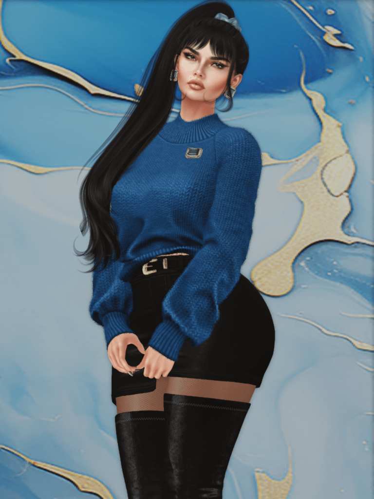 I am wearing her today on LeLutka’s Avalon head with the Ugly palette from Identity Faces, which, as you can see, is far from ugly! See that double liner? chef’s kiss Also, I am wearing Jack Spoon‘s Livie lashes, and my contour is from Warpaint, from the Gauntly set. My eyebrows are Noelle by Nuve (my eyebrow crack dealer in SL), and the deep brown eyes are Trendie by Avi-Glam.