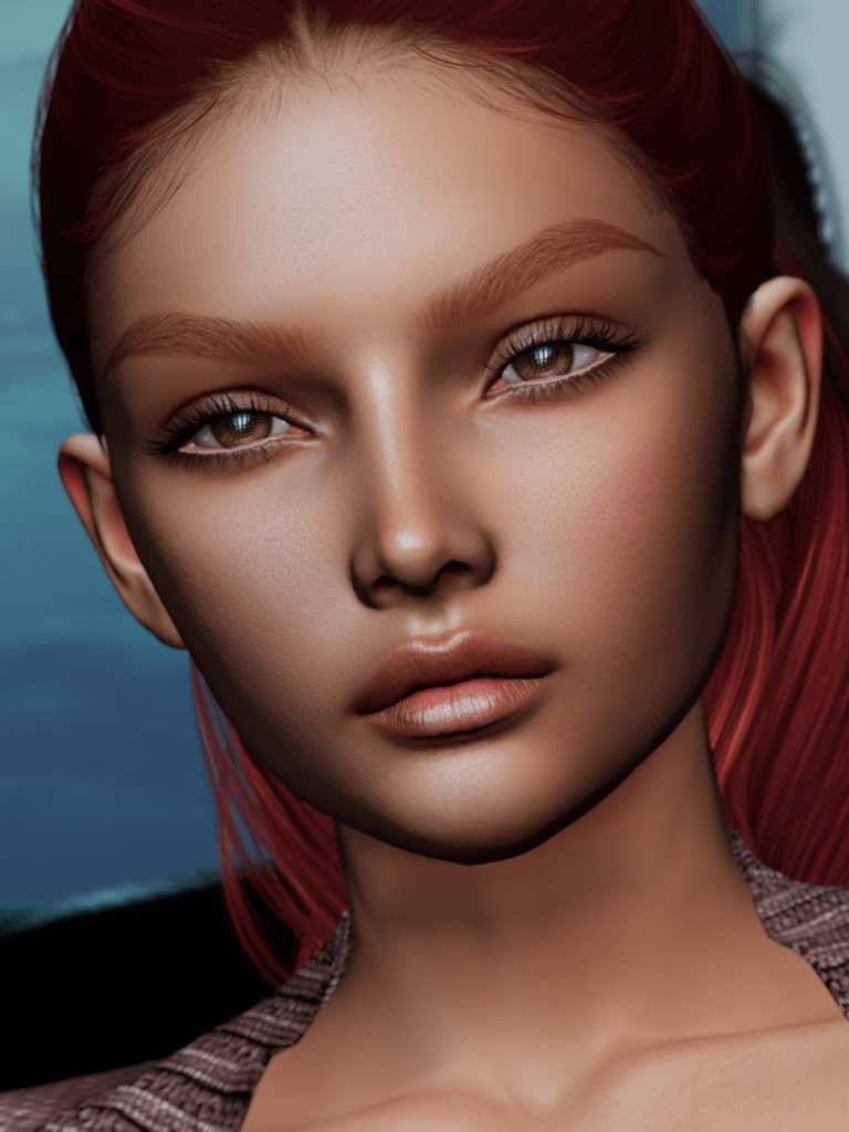 For my skin, I caved and bought Tryne from LeLAPEAU at The Fifty. An event I always buy at because they have a great selection of participating merchants whose aesthetic I like! Tryne is beautiful. I decided not to go with the quite bushy brows that she comes with, but to use the more defined Florence (HD) brows from Nar Mattaru because I couldn’t make the brow shape work for me, without losing the face shape I like. Today’s eyes are from the Halcyon collection from Ikon. Also, I am not wearing any make up today, because with that work out, I would just be sweating it off and look horrible! My hair is from Stealthic, named Helix. As usual, all pictures have been uploaded directly from SL, and haven’t graced my photoshop.