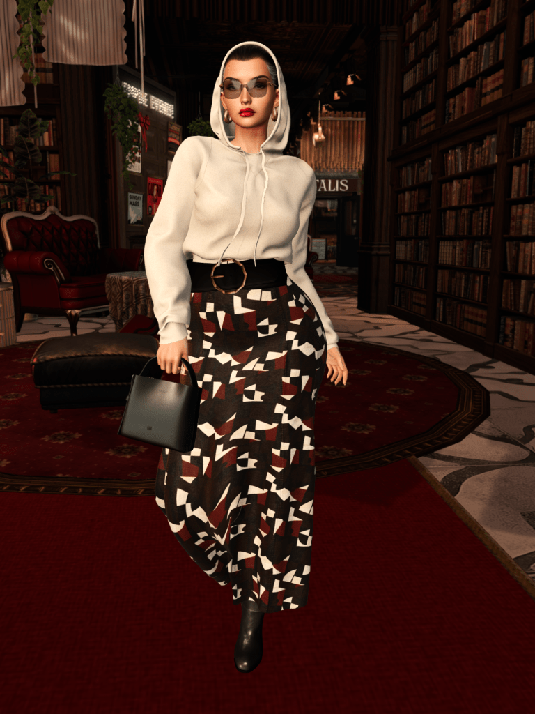 I so love the little styling notes and challenges Emma Gilmour provides in the note cards coming with her fashion! It is inspirational and it makes me want to go back to these items over and over again to play more. For 12 days of Christmas, the hugely successful annual Christmas bash spearheaded by the powerhouse that is LeLutka, Mellow Elie had a mini pack of the Felton hoodie out, but now 12 Days is over, the special pack has been retired, and instead, Emma has released a full version of the Felton Hoodie. As she states in her styling note, a hoodie is the quintessential loungewear, but with the right fabrics, tailoring, and other fashion choices you can easily elevate it to a fun outfit to go grab a cup of coffee in town!
