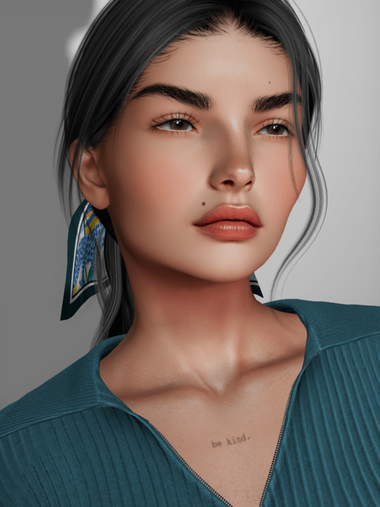 On my lips, I am wearing a slightly tinted transparent lipgloss by Midori’s store, and on my cheeks, the blush which came with the Zelie skin.