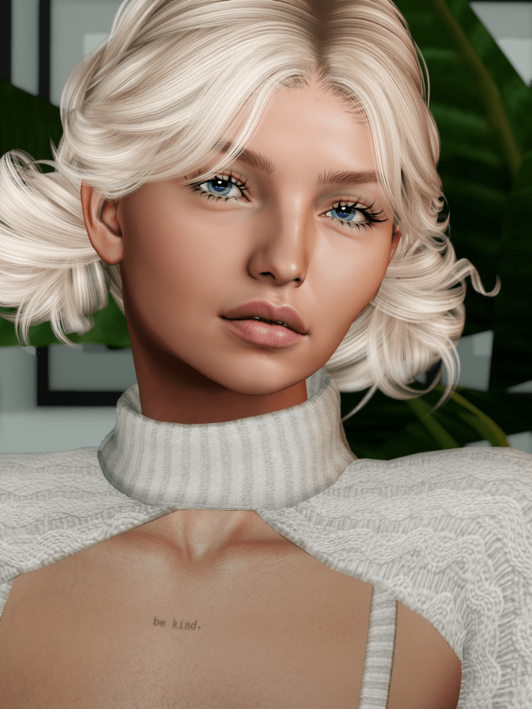 Once above pics were shot, I started to play with some makeup. I started out with Izzie‘s eye lid changer Med. Cr to get rid of that shadow which annoyed me, and I added some under eye blush which comes with all The Skinnery skins. My makeup today is Velour. They have some beautiful items out for the weekend sales, and I am wearing it all! The Jelly Style blush, the Love Me More eye shadow and the Glinda faded lipstick. On my lower lid I have added the Nar Mattaru Construct under eye shadow, edited to have a soft brown hue.