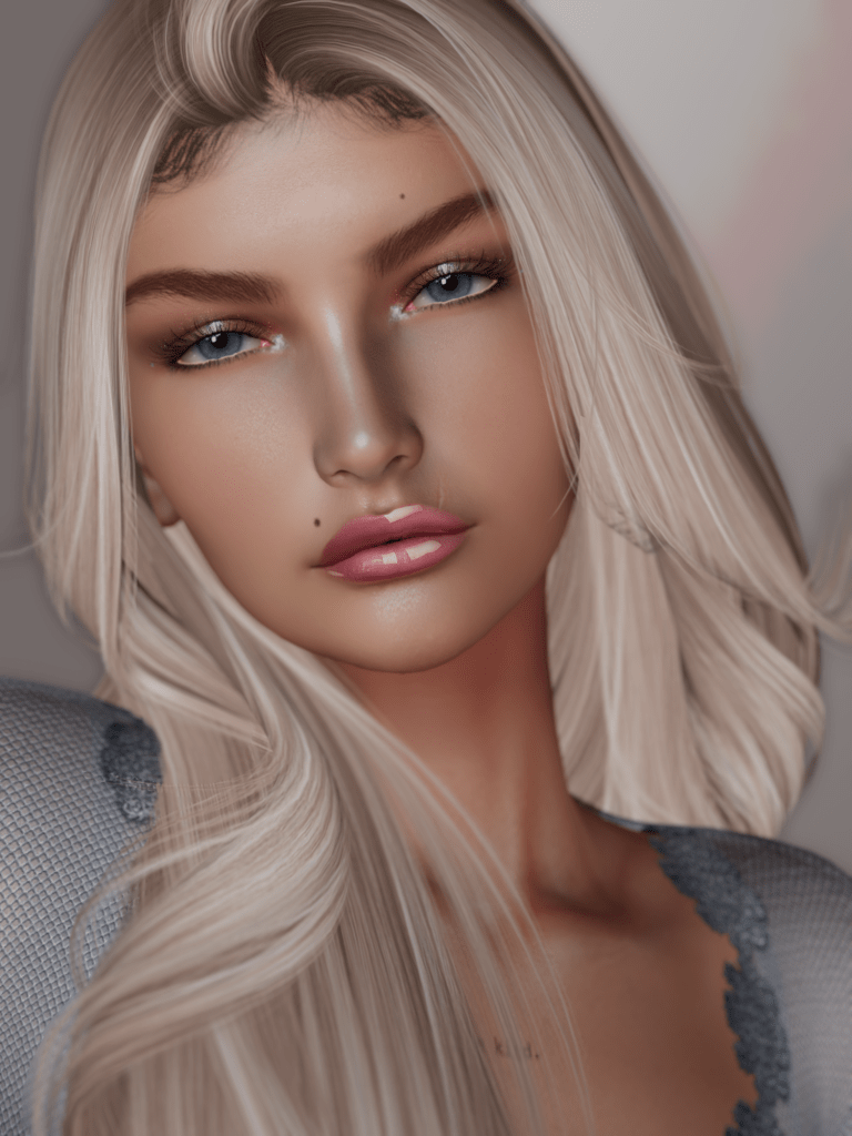 Hi, it’s me again! Your friendly neighborhood skin addict! I have picked up Stella by Lapeau at Kustom9 today and she’s lush and soft and pretty! I decided to wear her with blue eyes (Trendie, by Avi-Glam) and long ash blonde locks (Nala, by Doux).