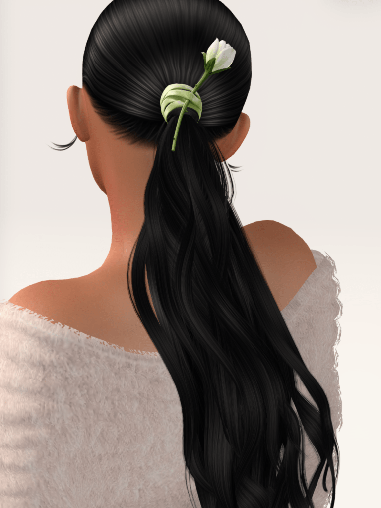 So as I am putting on some makeup, I also did my hair properly, by selecting the Rosa ponytail from Studio Exposure for a more modern and frankly, more elegant, look. Even if I am going to keep the rest of my outfit and makeup simple, because I am just going to decorate my skybox some more.