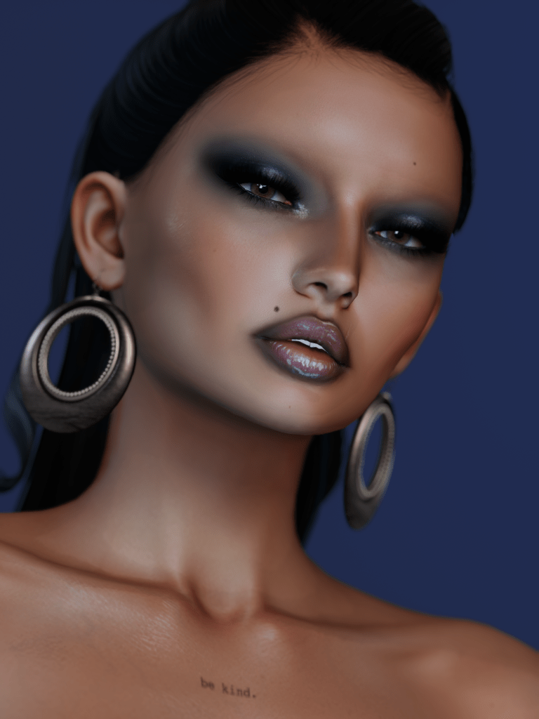 I’m wearing RAMA Salon latest hair Suzie, and LeLutka‘s Camilla with their default Camila skin, as usual. There’s nothing new there, but then I went with Keikumu‘s Thorpe eyeshadow, and used their Chocolate liner under Top1Salon‘s Honestly lipstick. My earrings are MaruMaru, by Mandala.