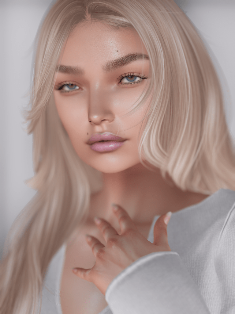 Over the weekend I picked up this pretty face at Moccino. She’s flawless and pretty and her mouth is just luscious. While beautiful out of the box, I had really lovely time playing with make up on Pedrita! Below you see her with the default eyebrows and just my standard marks. The eyes for this entry are Enchante from Avi-Glam. Also, my hair is from Doux, Parita.