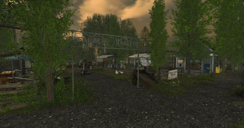 The entire sim is beautiful. It’s a bit rainy, but the owners gracefully have several umbrella’s out there for you to grab, and the wildlife seems to feel right at home too. The Cerulean Township station announcement system lets me know that the next train is indefinitely delayed so I grabbed an apple from my bag, and went for a little walk! There is so much to see! Nature, pretty rentals, all sorts of curious angles and cafés to explore, bikes to ride, and a hot air balloon to see the sim from above!