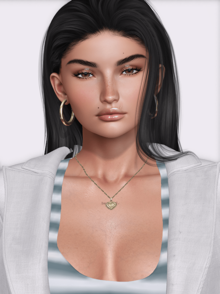 This look demands an equally casual but pretty makeup. I am wearing Amara Beauty‘s Florie skin on LeLUTKA‘s Camila head with Nuve‘s Noelle eyebrows, and used Top1salon makeup. HD Glam eyeshadow and HD Rid lipstick. For jewelry, I went with Yummy‘s Alicia set. It’s an older one,but still one of my favorites. My hair is Truth’s Elusive