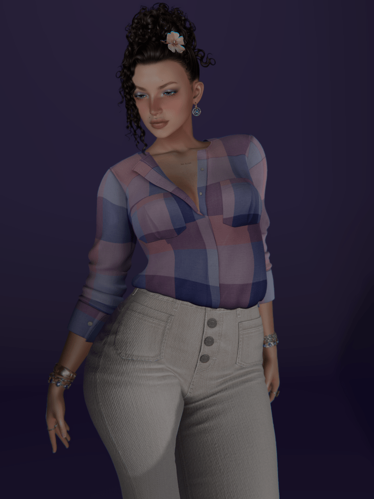 I am wearing her here with my usual face imperfections, as well as a blush that came with the skin (there are tons of extras, by the way!!), eye makeup from Identity Faces‘ Provocative collection, and Ladybird‘s Athena lippies!
