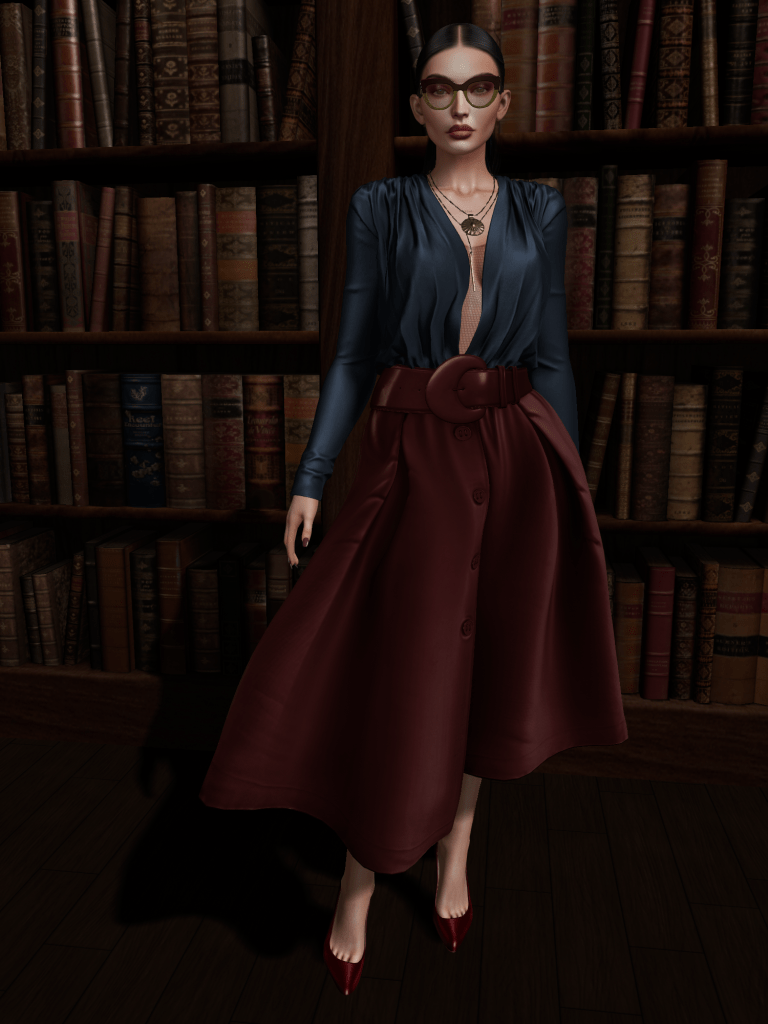 My skin today is Rosie by Nuve—soft, luminous, and quietly confident. I’m wearing makeup from Identity Faces’ Rebound collection, giving me a natural polish without trying too hard. Hair is pulled back in a simple ponytail, courtesy of Studio Exposure’s Miss Baker—the perfect blend of ease and sophistication.