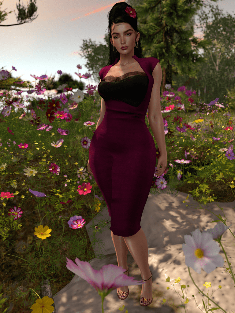 I’m wearing the Valerie dress by Valentina E in the most delicious berry hue. It’s sultry without screaming for attention—thanks to that lace-layered décolletage that hints without revealing too much. Paired with KC Couture’s Elle heels and the understated elegance of Yummy’s Alicia hoops, it’s the kind of outfit that says “summer soirée” with just a side of “yes, I slay.”