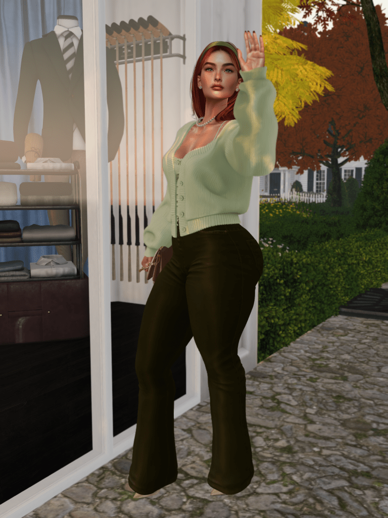 To complete the look, I chose Clique hair by Stealthic in a warm ginger shade, which sets off the fresh Not Found Amara skin and Ikon’s Felicity eyes. Add freckles courtesy of Jack Spoon’s Good Apple blush, and the whole vibe feels like autumn bottled up in pixels.