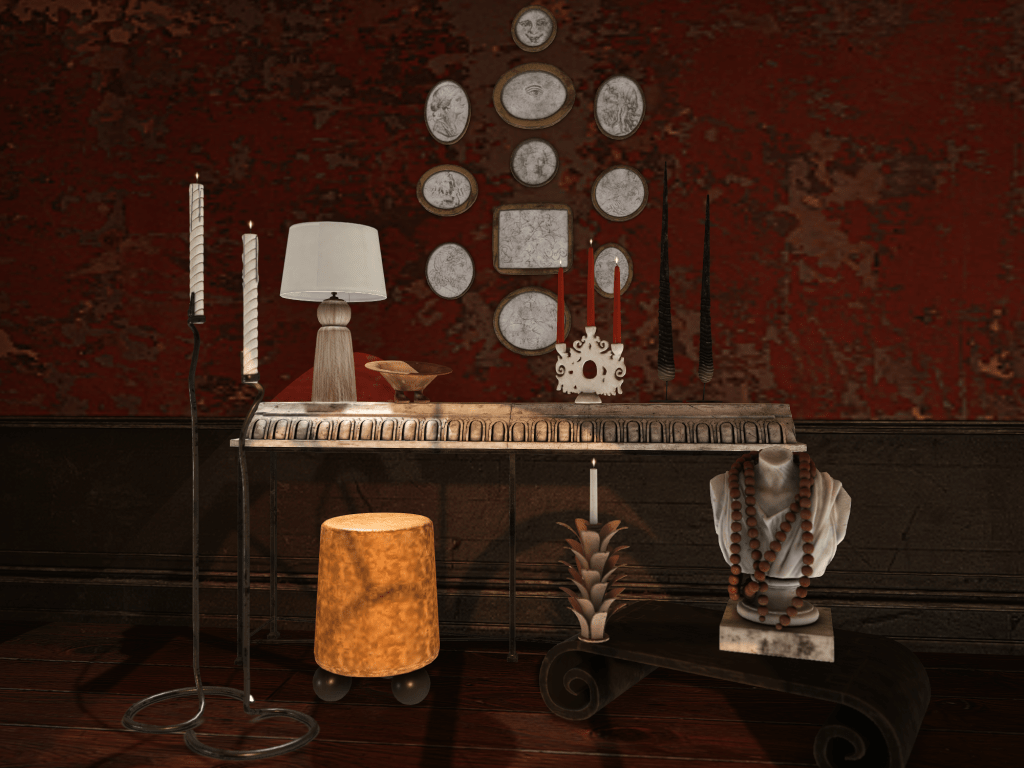Then I moved on to Avani and the Peu Orthodoxe set. This one pulled me in quietly. It is an eclectic mix, but it feels intentional. Antique marbles, mid century ceramics, soft textures. Nothing feels random. You get a linked version that rezzes the full setup in one click, which is practical when you want a complete scene fast. But the strength is in the individual pieces. You can break it apart and rebuild it in your own way, which makes it more versatile than it first appears.